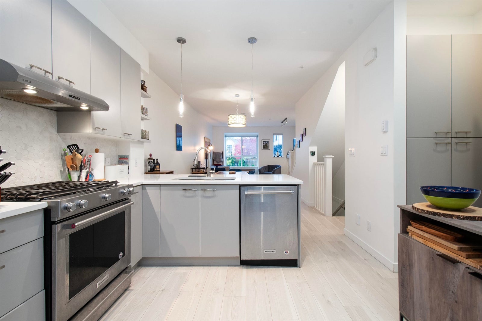 Welcome to this beautifully built 3 bed, 2.5 bath townhome by Solterra, offering 1,351 sq ft of well-designed living space right in the heart of Downtown Squamish. Enjoy mountain views from multiple rooms, a fenced south-facing yard and patio, and a massive double tandem garage—perfect for parking, storage, or all your gear. Built in 2017, this home features stylish finishes throughout, including stainless steel appliances, quartz countertops, and a marble hex backsplash. You're just a short walk to shops, parks, schools, and trails, making this the ideal blend of convenience and lifestyle. Book your showing today!